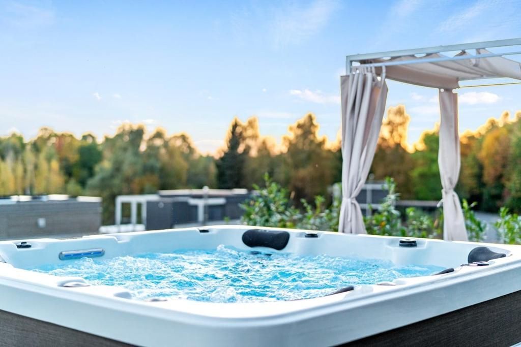 Der großzügige Garten mit privatem Wellnessbereich, Whirlpool, Sauna, Sonnenliegen und Grillplatz lädt zum gemeinsamen Entspannen mit wunderschönem Seeblick ein.