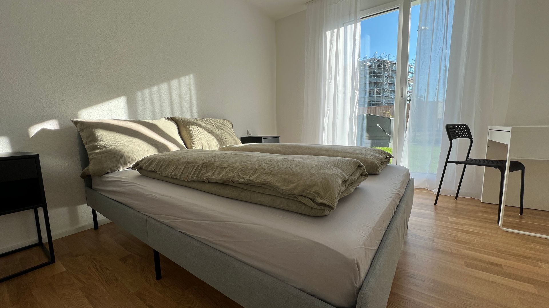 Ein Arbeitsplatz im Schlafzimmer ist eingerichtet.